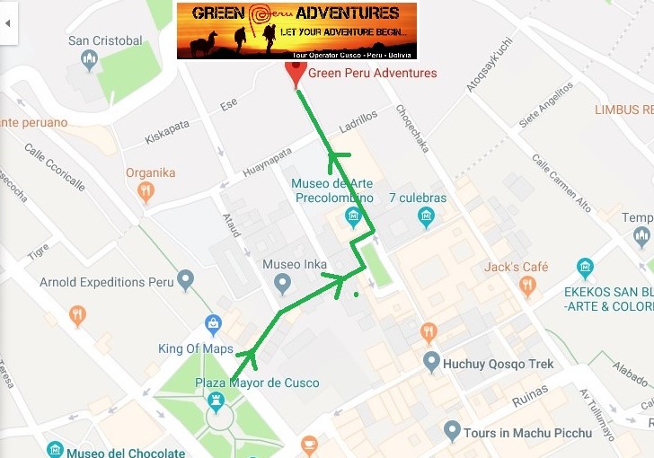 Wij bevinden ons in het hart van de stad Cusco en zijn daarmee gemakkelijk te bereiken. Ons kantoor is gelegen in